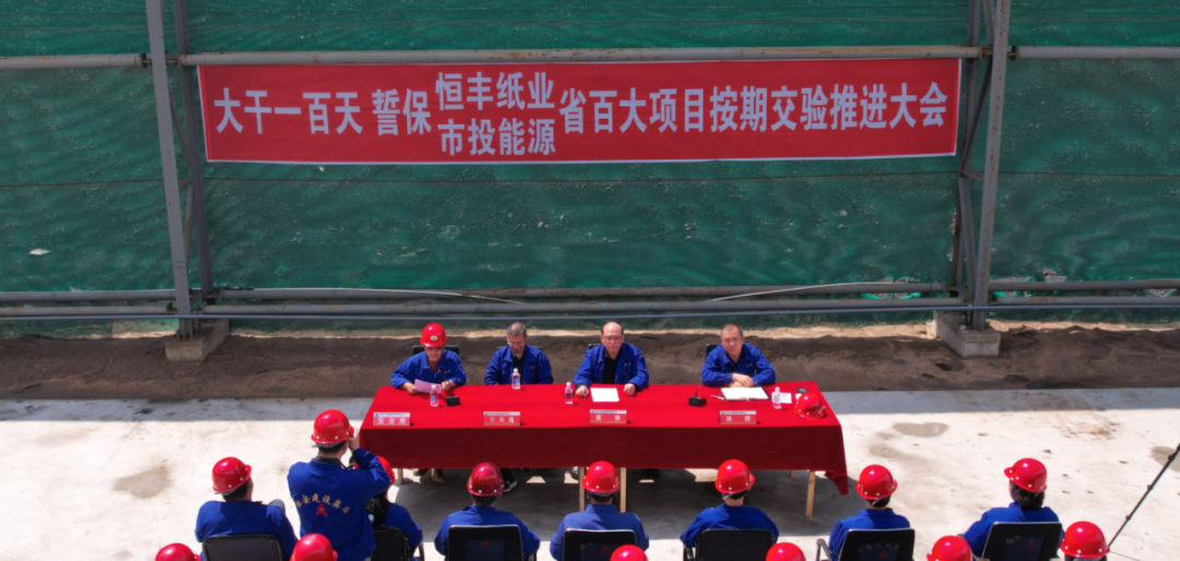 此次參加“會戰(zhàn)”的兩個項(xiàng)目(恒豐紙業(yè)/市投能源)負(fù)責(zé)人曹福昌、李宜永及勞務(wù)隊(duì)伍負(fù)責(zé)人李大山,在會上作表態(tài)發(fā)言。
